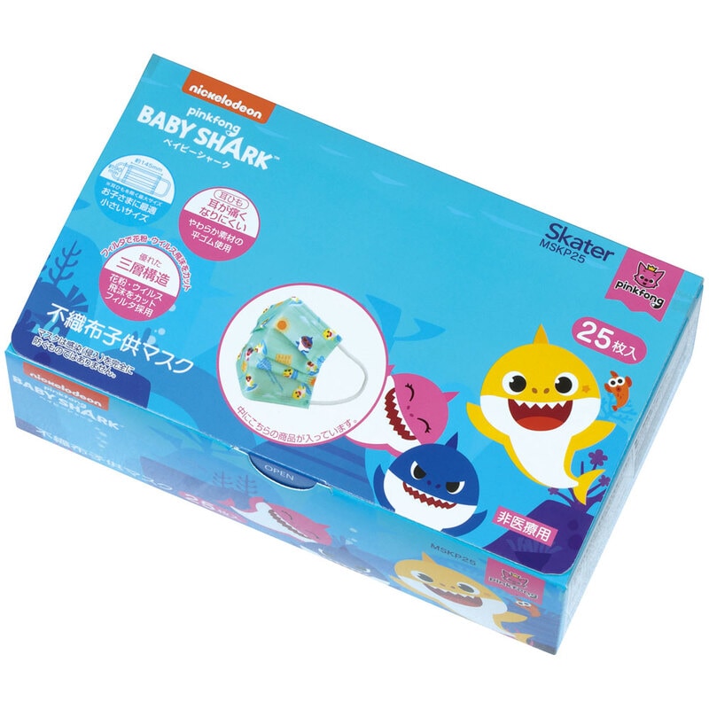 【4個までメール便可】99% カット マスク 立体 子供 用 不織布 10枚入 不織布マスク 立体マスク キャラクター MSKS3 スケーター ベイビーシャーク サメのかぞく 男の子 女の子