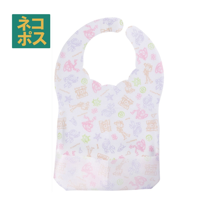 【2個までメール便可】不織布ベビーエプロン 10枚入 トイストーリー ベビー用品 ベビーグッズ 食事 ごはん 食べこぼし 汚れ防止 携帯 お出かけ 薄手 使い捨て 軽量 ディズニー