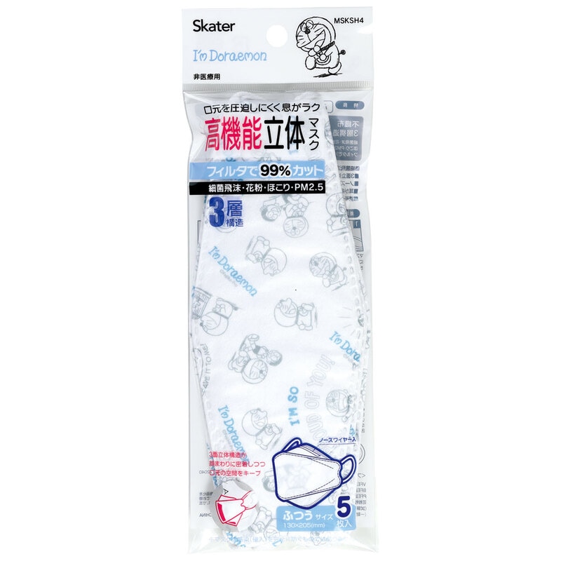 【3個までメール便可】99% カット マスク 不織布 大人 用 高機能 立体 5枚入り 韓国マスク キャラクター スケーター MSKSH4【かわいい 呼吸しやすい 口につかない 口紅 口紅がつかない 立体ドラえもん どらえもん 男の子 女の子 男子 女子】
