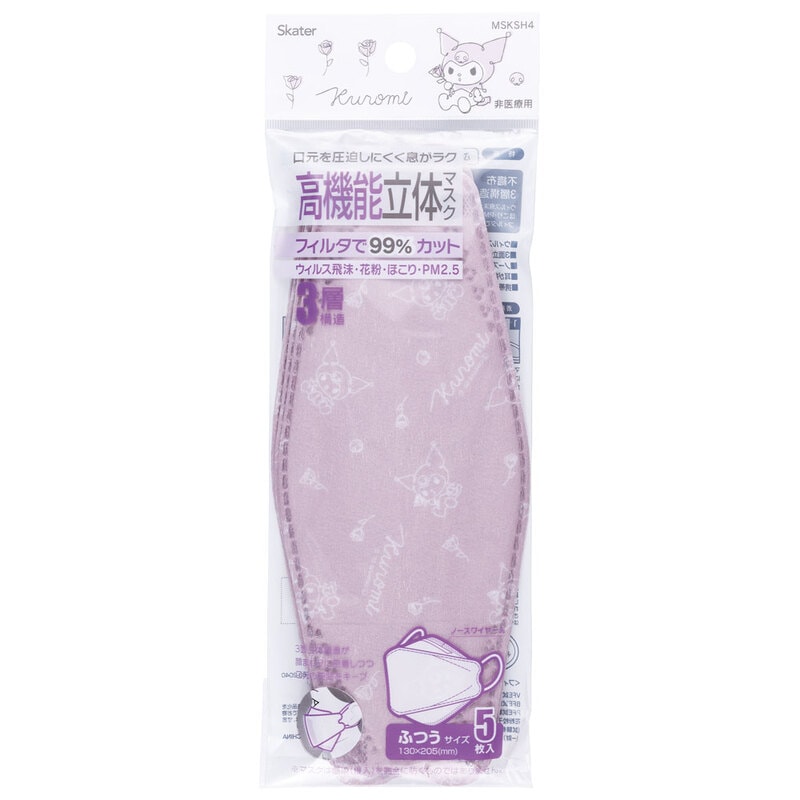 【3個までメール便可】99% カット マスク 不織布 大人 用 高機能 立体 5枚入り 韓国マスク キャラクター スケーター MSKSH4【かわいい 呼吸しやすい 口につかない 口紅 口紅がつかない 立体クロミ クロミちゃん マイメロ 女の子 女子】