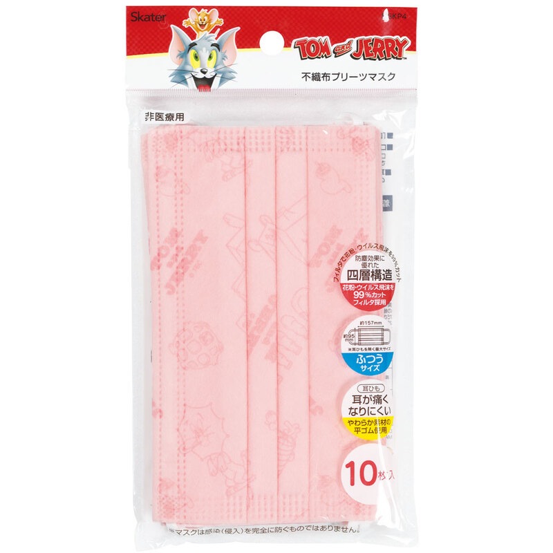 【2個までメール便可】99% カット マスク カラー 血色 不織布 大人 用 プリーツマスク 10枚入り 血色マスク MSKP4 スケーター【ふつうサイズ キャラクター プリーツ 血色 大人用 不織布マスクトム&ジェリー トムとジェリー 男の子 女の子】