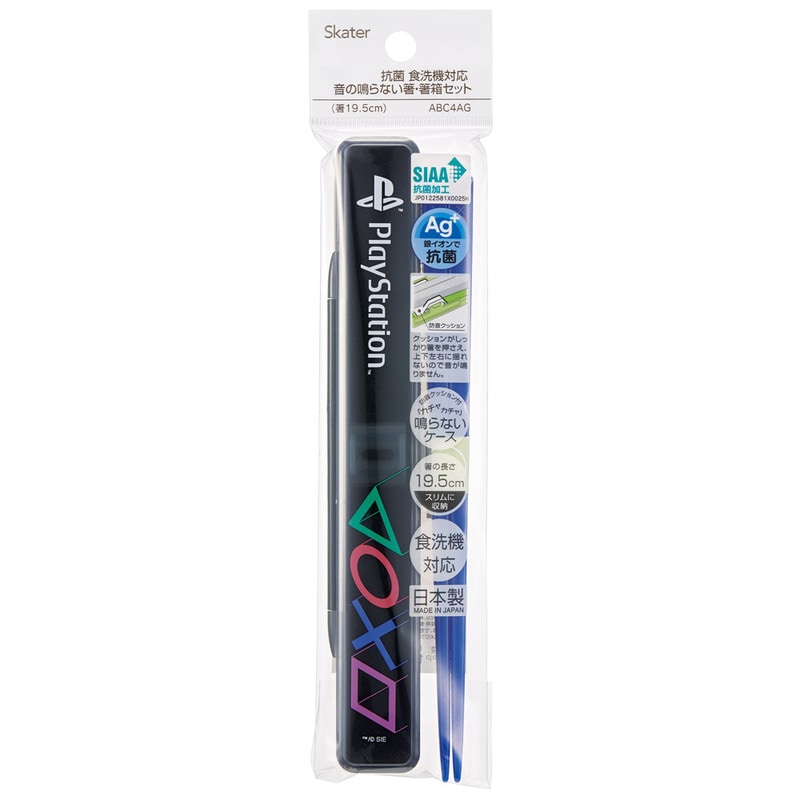 【5個までメール便可】食洗器対応 お箸セット 箸入れ 抗菌 カトラリー お弁当 箸 カトラリーセット skater スケーター ABC4AG PlayStation プレイステーション プレステ ロゴ グッズ【大人 箸ケース はし セット 蓋付き 箸箱 お箸 弁当 日本製】