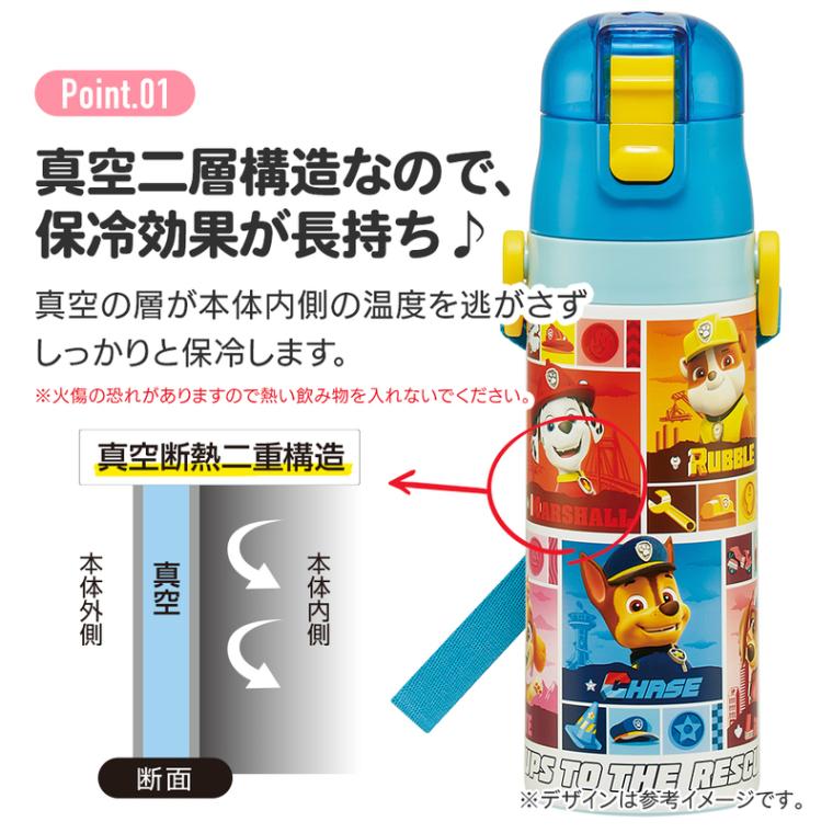 水筒 キッズ 直飲み 470ml ステンレスボトル ステンボトル ダイレクト 子供 小学生 skater スケーター SDC4 パウ パトロール 25年 パウパト 男の子 男子 男児【ワンタッチ こども ステンレス ボトル 保冷 ミニ ストラップ 子ども】