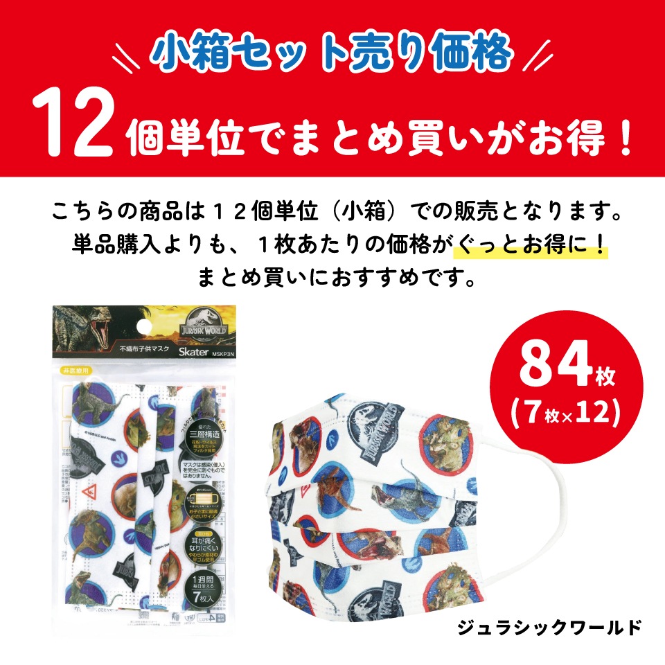不織布子供マスク7枚入りまとめ売りセット ジュラシックワールド