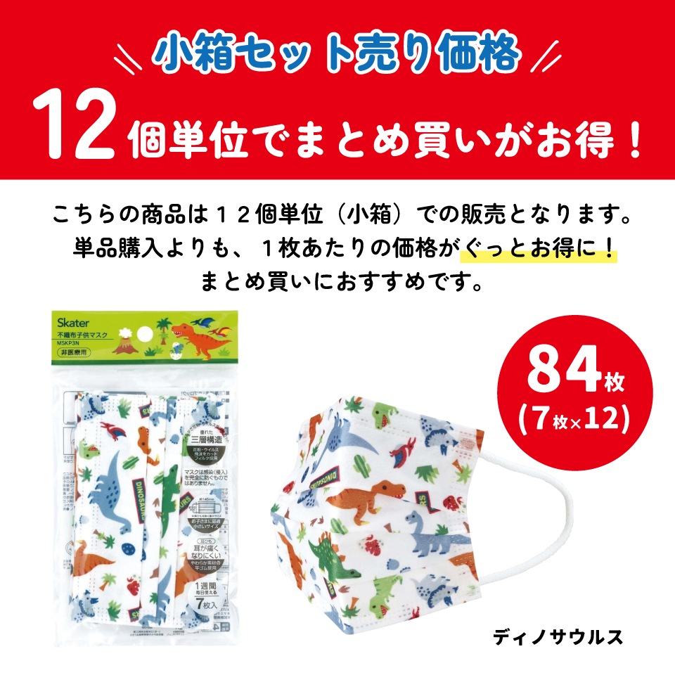 不織布子供マスク7枚入りまとめ売りセット ディノサウルス