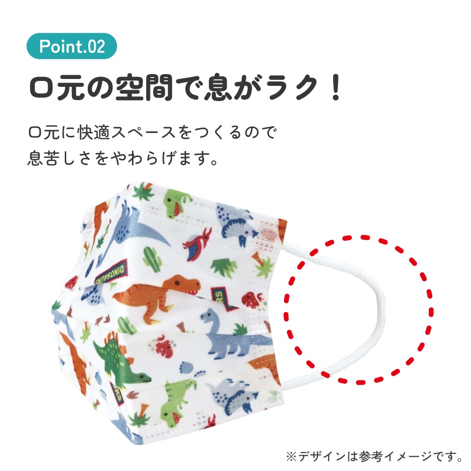 肌ざわりの良い快適シート口元の空間が快適スペースをつくるので、息苦しさをやわらげ呼吸がラクラク♪