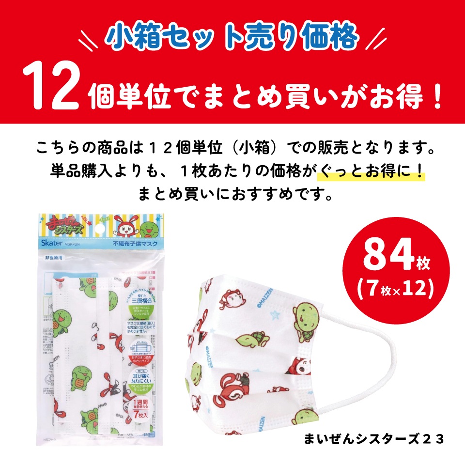 不織布子供マスク7枚入りまとめ売りセット まいぜんシスター23